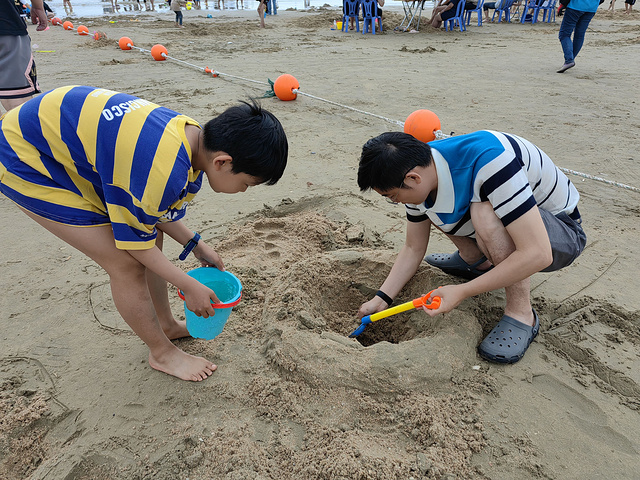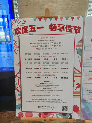 早餐后 ,我们没有立刻离开酒店。这家亲子酒店临海,且恰逢五一,还安排了各项游乐活动。我们准备先逛一圈儿,再出发平潭。
