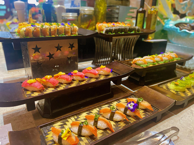 晚上选择在酒店吃的海鲜自助晚餐,有海鲜,寿司,刺身,各式的热菜,菜品很丰富