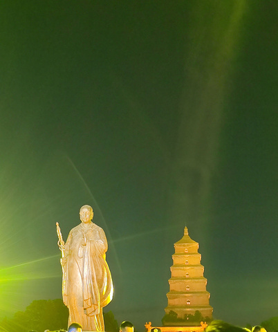 小寨站上车坐3号线到大雁塔下车,到大雁塔北广场,穿过诗词林,看玄奘法师,打卡玄奘法师和大雁塔的最佳拍摄位置,晚上9点看了最后一场音乐喷泉,回去坐地铁人很多