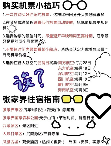 张家界旅游机票和住宿攻略(图1)