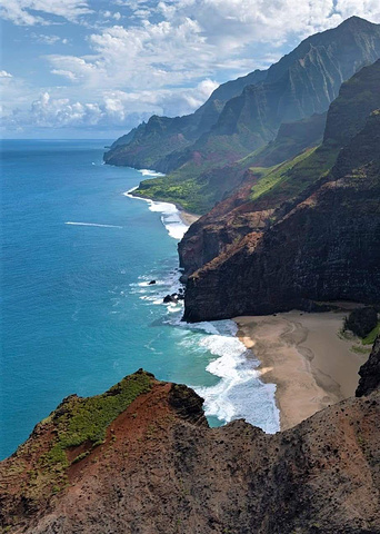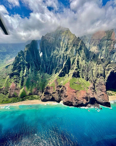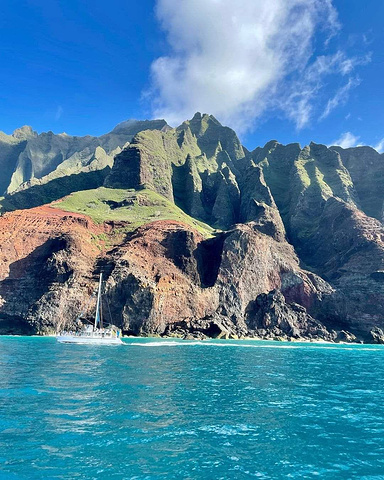 早上,在酒店享用早餐后,乘坐出租车或班车前往纳帕里海岸(Na Pali Coast),位于考艾岛的北岸。这是一个沿着考艾岛北岸延伸的壮丽的海岸线,有着陡峭的山峰、翠绿的山谷和绝美的海滩。你可以乘坐直升机、船只或皮划艇游览这一海岸,或者沿着卡拉劳步道徒步穿越。我建议你选择乘坐船只游览,因为这样可以更近距离地欣赏海岸的风光,还有机会看到海豚、海龟和鲸鱼等海洋生物。我参加过幸运女士号(Lucky Lady)举办的纳帕里早晨浮潜之旅(Deluxe Na Pali Morning Snorkel Tour),感觉非常棒。这是一个持续5个小时的旅程,包括船票、浮潜设备、早餐和午餐。旅程的价格是217.42美元,你可以在网上预订或者让酒店帮你预订。