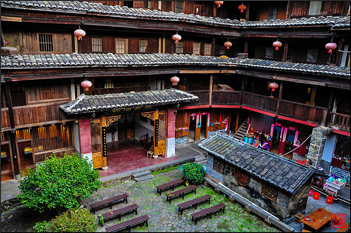 每次自驾游都会安排一些红色旅游经典景区,以便铭记历史、缅怀先烈。参观了古田会议会址和革命纪念馆后,驱车22公里,到达永定土楼群,参观了被誉为“土楼王”的承启楼,富丽堂皇的振成楼和民俗文化村等。游览之后又行驶22公里,到达云水谣古镇。夜宿云水谣小调客栈。