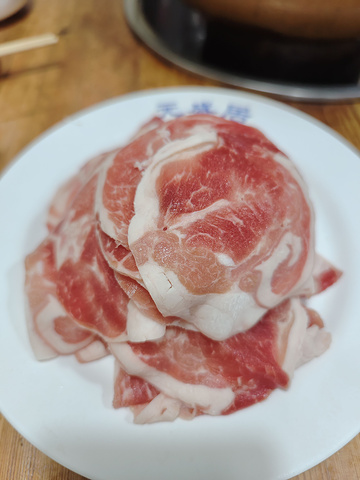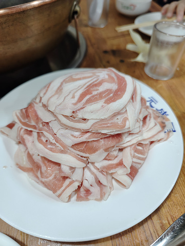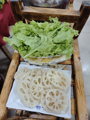 每桌必点的羊排肉和羊腿肉,那么我们都来一份,可能我们饭量都比较小,七个人两盘肉就够了,再加一些素菜。