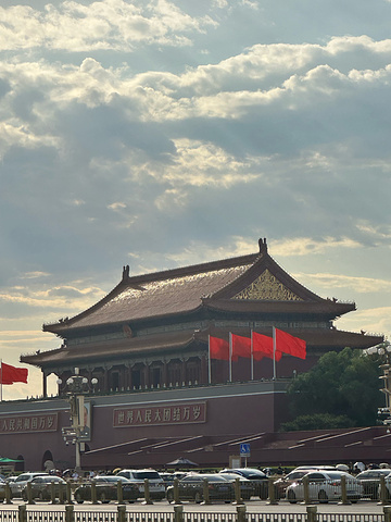 乘地铁1号线到天安门东下,门票需提前一到九天在微信小程序(天安门广场预约参观服务平台),门票免费。切记,一定要提早,越早越好。傍晚可以找一辆共享单车,可以近距离观赏天安门夜景。天安门升旗前40分钟可进入,降旗后不可进入。开放时间5点----18点。