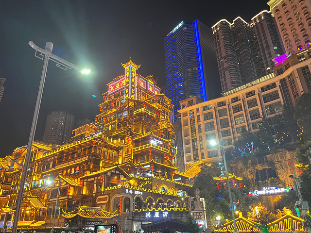乘6号线小什字站下九号口出,步行十分钟可到。晚上去好看,拍照出片,白天不亮,也可以在千厮门大桥上看。早点去,会很拥挤。洪崖洞亮灯时间夏季:20点--23点,冬季:19点--23点。吃饱了来,里面其实就是商业街,消费不是很便宜。来自游记渝见你