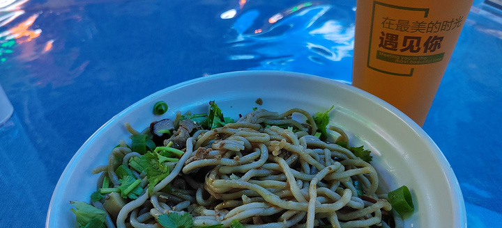 里面的饮食,嗯,吃吃就好,微笑。(凉拌莜面+蜂蜜柚子茶)