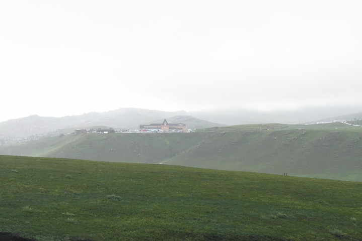 浓雾中的草原景色,可以看到云影映在地上的斑驳。