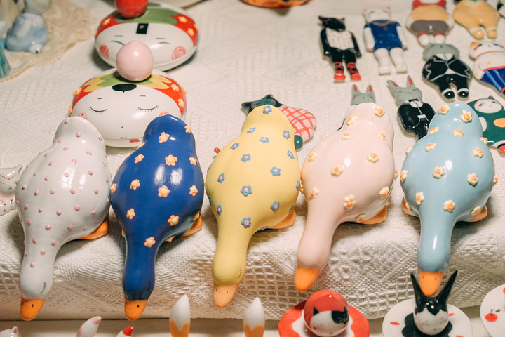 从青花到建盏到手捏瓷各种造型的都有,这里简直是陶瓷爱好者的天堂,慢下脚步,用心慢慢淘,可以发现很多有意思的东西,如果遇到特别喜欢的,别再犹豫啦,记得讲讲价,错过很难碰到第二个。
