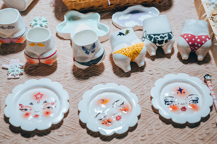 街区是全天开放的,集市只有每周五、六、日晚上16:30-22:00,以瓷器和一些小众手作为主,摊位大多是非常有格调和品味的文艺青年,每个摊位都极具品味,各种漂亮的手作看得眼花缭乱。
