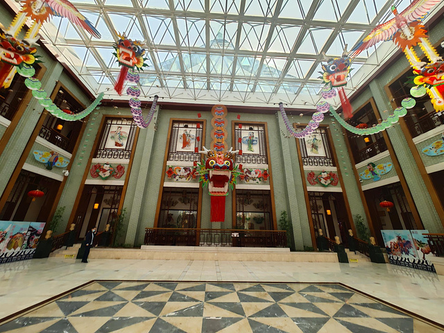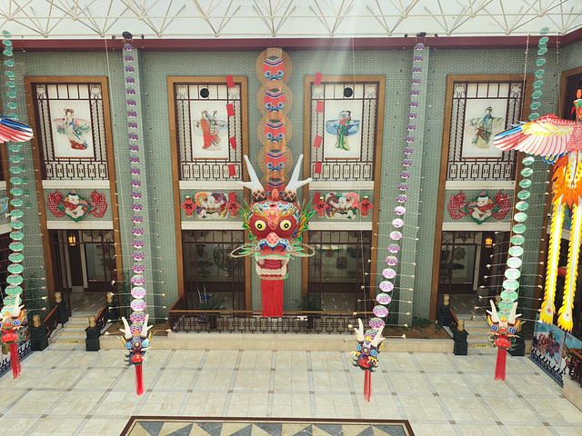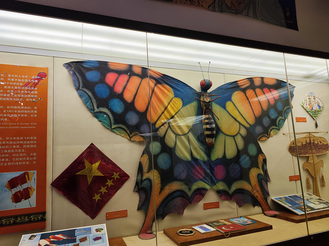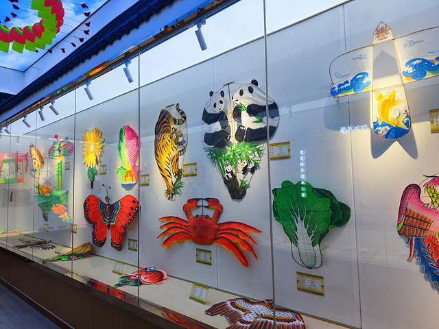 潍坊世界风筝博物馆(原潍坊风筝博物馆)是我国第一座大型风筝博物馆,建筑面积8100平方米,建筑造型选取了潍坊龙头蜈蚣风筝的特点,屋脊是一条完整的组合陶瓷巨龙,屋顶用孔雀兰琉璃瓦铺成,似蛟龙遨游长空伏而又起,设计风格在国内独树一帜。