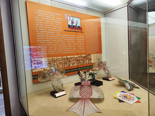 潍坊世界风筝博物馆旨在收藏、陈列古今中外的风筝珍品及有关风筝的文物资料。在共约2000平方米的展室里,介绍了风筝的历史、分类、创新以及潍坊国际风筝会、风筝界友好往来和潍坊的概况。展览以1000余只风筝精品、300余件翔实的风筝文物资料以及照片、文字、绘画、复制品等,全面、客观地展现了潍坊风筝所独有的题材广泛、造型优美、绘制精细、色彩艳丽的风格,介绍了富有构思大方、造型夸张、色彩对比鲜明、注重飞翔性能、研究价值较高的外国风筝;重现了1988年各国风筝组织代表推举潍坊为“世界风筝都”及1989年“国际风筝联合会”成立的重大史实。
