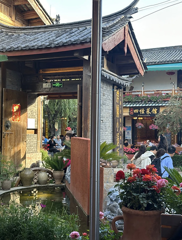 装修的很有特色的一家餐厅【浮娴小锅饭•云南民俗风味餐厅】,在束河古镇里是榜单第一名,没想到这么热门,我猜古镇的游客都在这家吃饭了。
