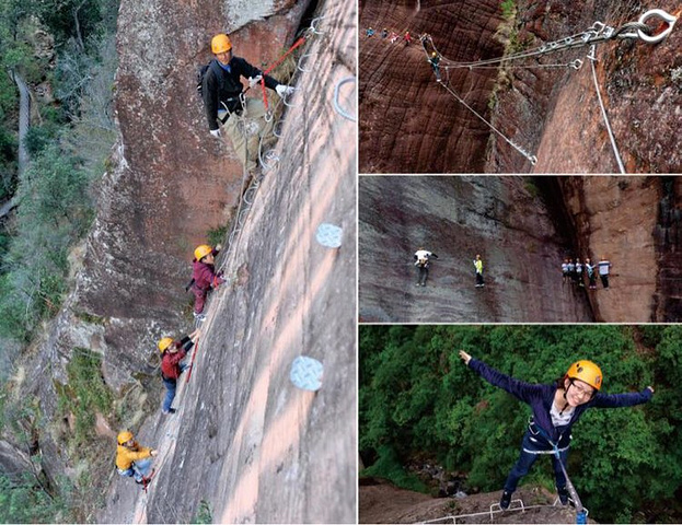 除了走栈道我们还可以通过缆车来观览景色,尤其适合体力不支的游客,为接下来的行程保持体力。慢慢地,老君山公园也开发了许多适合人们玩乐的项目,山上攀岩实在太刺激了,我也跟着体验了一番,简直不虚此行。