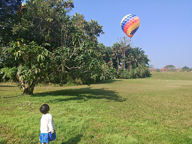 看见了热气球。