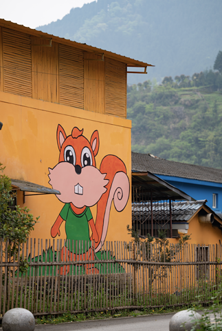 小火车行驶的很慢,方便游览金色清平的景色,坐在小火车上拍照都不会颠簸,整个清平镇果然就如网上说的那样宛如一个童话小镇,五彩斑斓的房子上绘有各种萌态可掬的动物,可爱到爆!所有人都在举着手机拍拍拍~