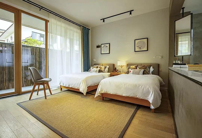 里面的房间也很有意思,有好多种不同的主题,花卉、亲子、人文……每一个房间都设计感满满,我最喜欢房间里那面巨大的落地窗,看着宽敞明亮,视野也开阔。