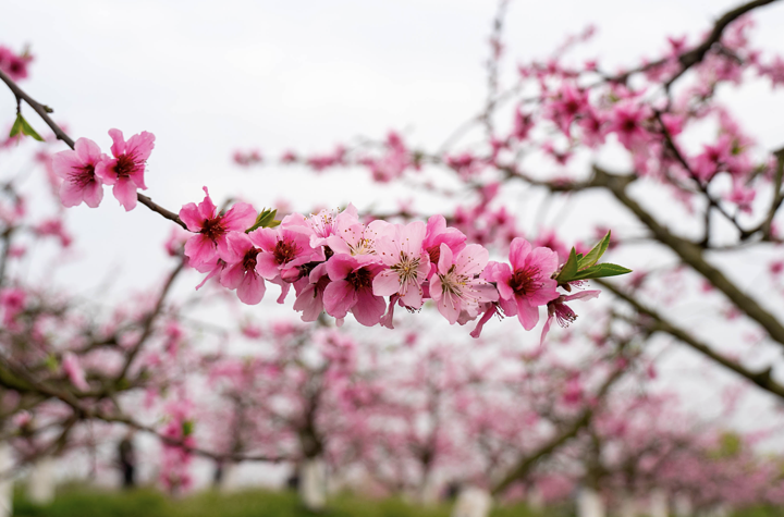 踏进这片桃花林,仿佛就被这粉红色的波浪淹没。走在小径上,四周弥漫着花香,深吸一口瞬间驾车的疲惫感就消散了。