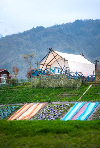 玩累了,还能在草地上围炉煮茶,享受悠闲时光,喝喝茶,吃吃点心,这就叫舒服~