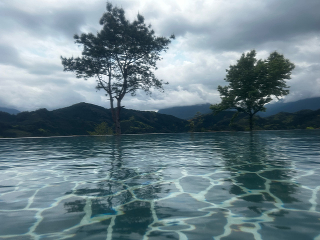第四天一早我们到广州南站乘坐到怀集的高铁车,为了去贺州的西溪森林温泉,长隆三天的奔波,该用一顿温泉去洗涤疲劳。西溪温泉每天10:35在怀集站有一趟大巴直接到酒店每人¥30比打车划算,12点准时到酒店,司机车技很好,温泉在山上需要绕很多盘山路,提前订的双床房两张床可以拼起来带小朋友也没有问题套餐1098里包含早餐和晚餐两顿自助1.2米以下小朋友不收费,入住期间,室外温泉不限次数,室内温泉可以放三次水,温泉是真的很舒服,室外温泉也非常大,山上山下有很多,在山顶上还有无边泳池,里面还可以提供简单的饼干之类的小零食和饮料水。避坑一点是在第二天下山的时候到怀集车站的大巴车是1:30左右发车,但还有一趟是到贺州客运总站的是30路公交车,15一位,两个小时的车程,本来觉得公交车下来也行,但是这辆车的车况是真的很糟糕,全程非常颠簸,而且从西溪温泉出来以后会到他们当地一个客运站需要在那里逗留半个小时,所以在匡算时间的时候要额外再加半个小时。不建议坐,下山路上都被晃吐了,还是打车吧。