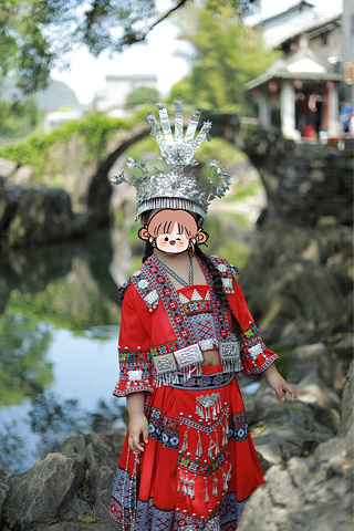 所以第五天的行程是上午依然在酒店卧室的温泉里继续泡,下午坐了公交车到客运总站以后,提前约的车到黄姚古镇车程一个小时,每人¥40黄姚古镇6:00之后就不收门票了,我们到的时候差一点,就在门口等了一会儿,提前约的客栈主人出来接的我们,晚上我们在古镇转了一小圈儿吃了顿晚餐,熟悉了一下地形,来到这主要是为了给宝宝拍苗族的服装照片,实景外拍,古镇上有很多出租衣服拍民族照片的地方,其中住店老板娘推荐了一家进去咨询了一下就预约上了。