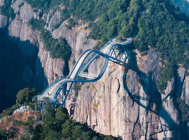 如意桥:横跨两山,造型像玉如意。从空中俯瞰,非常壮观。寓意吉祥,如意桥走一走,求个万事如意。