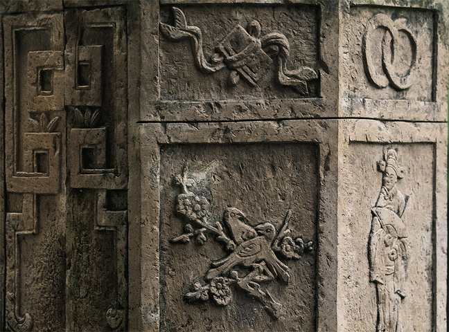 沿古街走一段有深巷向外延伸,说这是古镇的脉络,把一条街最终铺成一张网;“龙”形古街的尾部有个祠堂,门前矗立着比较罕见的砖雕坊,能清晰的看见上面雕刻的仙鹿、喜鹊、麒麟和摇着扇子的秀才,不得不再次感叹古人精湛的技艺,真的是能工巧匠在民间。