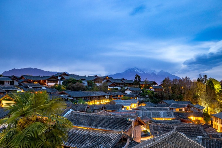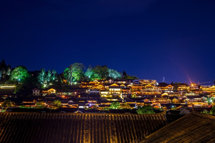 对于时常锻炼的我来说,在海拔2000米以上的古镇爬山实在是力不从心,而且今天已经是第二次爬到 狮子 山顶,已经喘的不行,崩溃的是上山后发现 狮子 山已经关门,只好到旁边找高点,最后以60元一杯的果汁在高点的餐厅落脚,支好三脚架,等待夜幕的降临