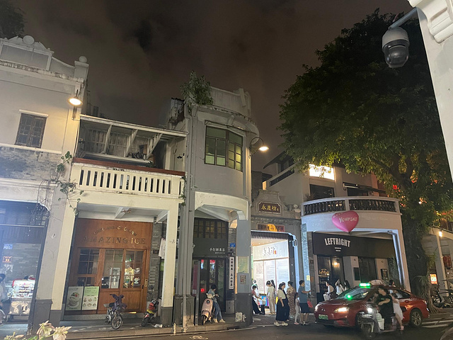 西关骑楼风格建筑,骑楼是华南地区特有的外廊式商住建筑,楼下为商铺,楼上住人,廊道供行人遮阳避雨。名称源于东南亚(印尼称“五骹基”),后传入中国两广、福建、海南等地。古朴的青砖、木趟栊和满洲窗,原汁原味的西关大屋。