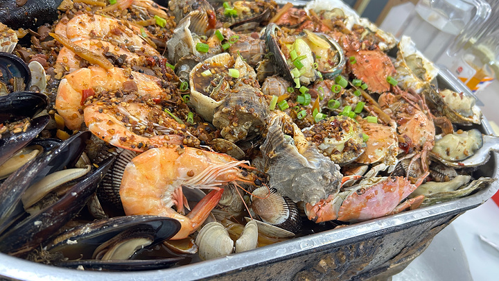 📍墟沟👉🏻据说这里的海鲜更好吃👉🏻特地来这边品尝了当地特色🈯️个人觉得海鲜只要食材新鲜,每个店都味道都差不多,注意问好价格别被宰啦海鲜大咖干杯!🦞美食:海鲜大咖来自游记连云港|全家出行度假首选—带小狗也去看海啦【旅游攻略】