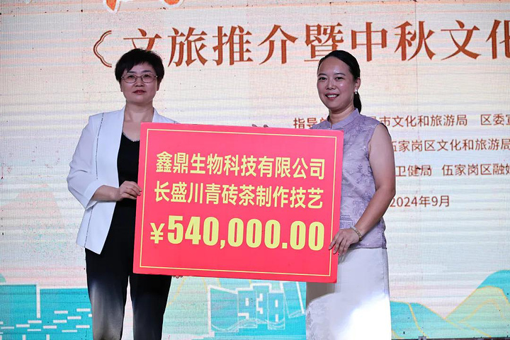 活动现场,主办方发布“畅游宜昌 从伍家岗出发”周末游品牌第二期,并为鑫鼎生物科技有限公司青砖茶制作技艺颁发国家级非遗保护资金54万元,还给宜昌木鱼、三峡铝编技艺、三游春酒酿造技艺等第九批区级非遗传承项目和第三批区级非遗代表性传承人进行授牌。