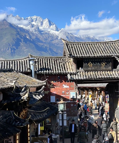 坐落在玉龙雪山脚下抬头就是日照金山街巷里充满诗意与烟火气