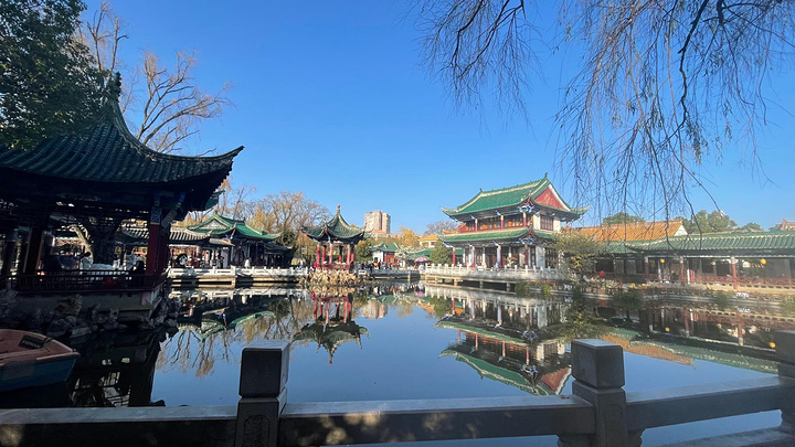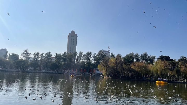 下午翠湖比较意外,更加美丽了,更加秀丽了,青枝绿叶,花鱼鸟虫,荷塘月色,湖光山色,古朴建筑古色古香,盆景雕刻惹人喜爱,观景绿道垂柳低下,和谐阳光从树梢间下来,衬托的更美,夜景则更幽美,灯光更绚丽多姿,火树银花,景道七彩斑斓。沿人民路到翠湖两条小道,一条南门一条西门,其中一条旁边就是讲武学堂另一就是云南大学,环湖一周东西南北中,景色在心中。暖冬的春城,依旧绿色包围,花鸟鱼虫,眼中尽是景致。由是湖中海鸥在游人喂养下,越发格外有灵气,相互追逐打情骂俏,争抢投食,起落有致。时而掠水飞行,时而低空盘旋,时而直冲云端,时而俯冲而下,激起浪花一朵朵,引起游人啧啧之声。成群黑白海鸥绕弧线作出美妙舞姿,唱出天籁之音,尽情展现完美曲线,精致曼妙身段,凌空微步,与翠湖同乐,与游人同乐,与自己同乐,奏响一幅美丽华章。