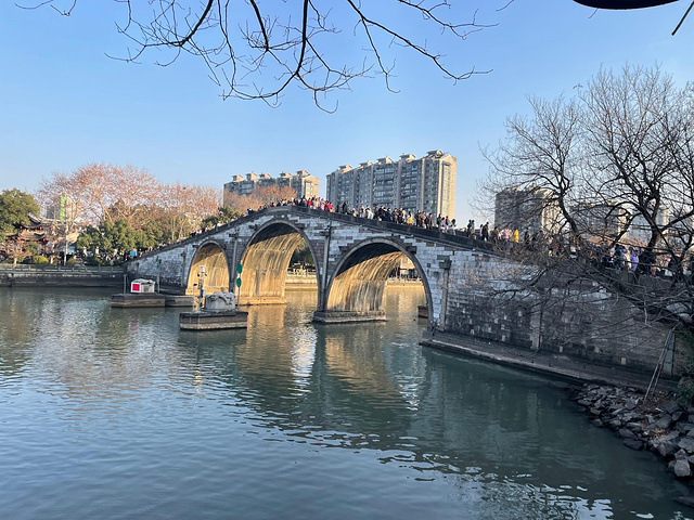 大运河是杭州起点也是发源地,历经沧桑人文自然建筑吸引无数人向往,轻轻河流满载交流学习交换,经济发展。大运河两岸分布着不少历史文化与建筑风貌自然景观人文特色,信义坊文化街区,大兜路历史街区,小河直街历史街区,小河工业主题公园,拱宸桥历史街区,历史与运河相融合,相依存,相映照,上次方向反了没有成行,这次补上了。从香积寺,大兜路开始行军,香积寺一座古刹,香火旺气,善男善女众多,满满全是人,旁边就是大兜路步行街,上次春节来过,人不多,青砖铺地,韵味十足,建筑风格清民时代,古树苍天,一边临运河,滔滔大河,河水轻摇,灵动之极,河面游船,客运船来来往往,激起浪花一朵朵,空灵幽静。下几步台阶就是河边,沿河小道整洁干净欣赏运河佳处,此处有一站。河边摆摊一字排开,什么金银玉器,玩偶小物,特色小吃,挂饰摆件,零七八碎,占满街面,拥挤不堪,非凡热闹,另一边建筑新旧搭配,协调异常,错落有致,完美主义。每个店铺都不雷同,风土人情。色调冷暖,装饰感触,摆放体验,令人亮瞎双眼,思想决定品味。街区不长,开业甚少,气氛浓郁,节日氛围广,装扮精致,有感触。静观人文建筑现代美学,远观运河变化悠悠,人间烟火。七拐八拐来到小河直街,明明觉察到江南水乡,小桥流水人家,枕水人家与大运河截然不同,桥下水流桥上人家,好美啊。小小桥面人满为患,小小街区一线天,走也走不动,同江南小镇一样,体验感极强。店铺全开,门庭若市,仿佛又回到 那个年代,叫卖声,吆喝声,敲击声,此起彼伏,太火了。和大兜路风格又不同,两层小楼古色古香,原汁原味,古朴雅致。随意一个店铺一种样式,一个门槛,一种装饰,街不长路不宽青石地面,凹凸不平却踏实。弯弯曲曲,上上下下,绕小河运动,小桥配流水,人流配行走,人桥水互为一体,极美。