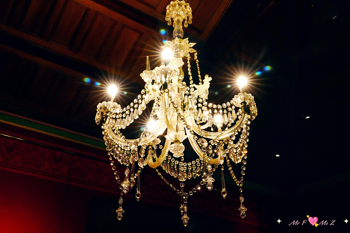 视线望向屋顶,雍容华贵的吊灯与天花板上来自美国的道格拉斯冷杉梁相得益彰,更加凸显了音乐室的高雅。