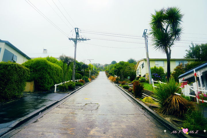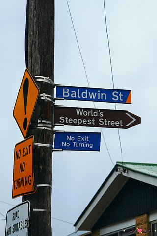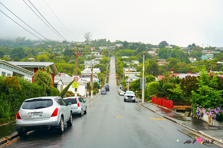 离开富有历史感的校园,我们前往今天的第三站——鲍德温大街(Baldwin Street)。此时,雨越下越大。19世纪末,但尼丁的一名城市规划师在未实地考察的情况下,“纸上谈兵”般地绘制了这条街道的布局,却意外造就了如今载入吉尼斯世界纪录的“世界上最陡峭的街道”。
