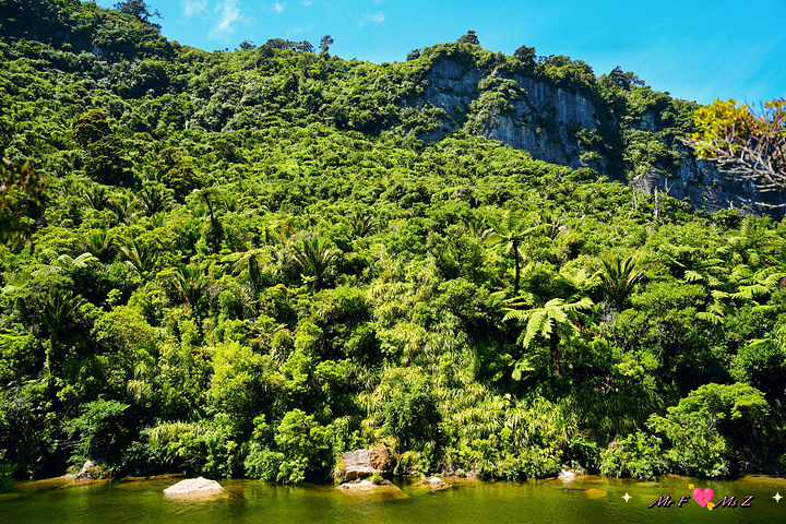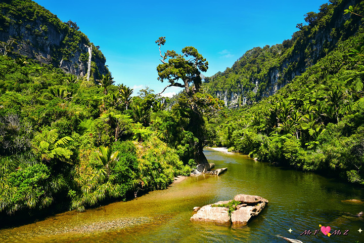 尽管普纳凯基的海岸线已经足够震撼,但那还不是全部,只需从小镇再向内陆行进片刻,你便会邂逅新西兰最独特的河流峡谷奇观——高耸的石灰岩崖壁如天然雕塑般矗立,翡翠色的深潭倒映着葱郁的亚热带雨林。