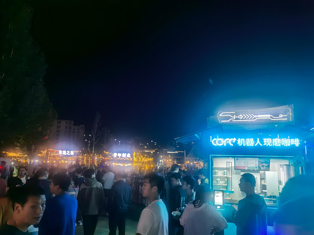 晚上到了司机推荐的“青年营地”,感觉原本应该也是可以露营的地方,但是位于新城区的中心,现在旅游旺季时期就搞成了一个很热闹的集市,分了很多区域,各有不同的主题,既可以参观了解当地特色,也可以卖东西拉动消费。确实是想法很好,也很热闹,是太热闹了,青年营地果然只适合青年人