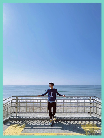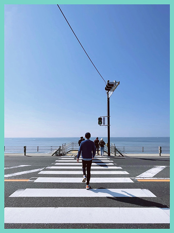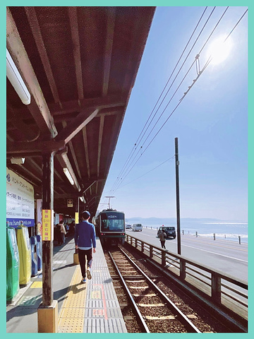 其实呀,这个车站附近并没有太多的经典啥的,但是车站紧邻湘南海岸,出来铁道之后到对面。你可以看巨美的海景,海风吹拂在沙滩上,七里滨海岸和江之岛组合在一起,形成了一幅天然的电影画面。