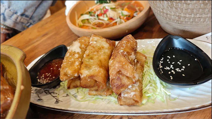 招牌小锅饭,里面配料丰富,口感不错,点椰香泡鲁达 椰香味十足,傣味柠檬鸡爪酸辣适度,非常开胃,白情人梅烧排骨里面确实有明显的话梅味道,甜味的排骨,炖的很软烂。整体体验非常不错,值得推荐。