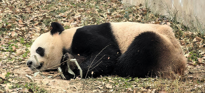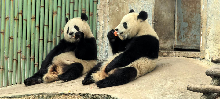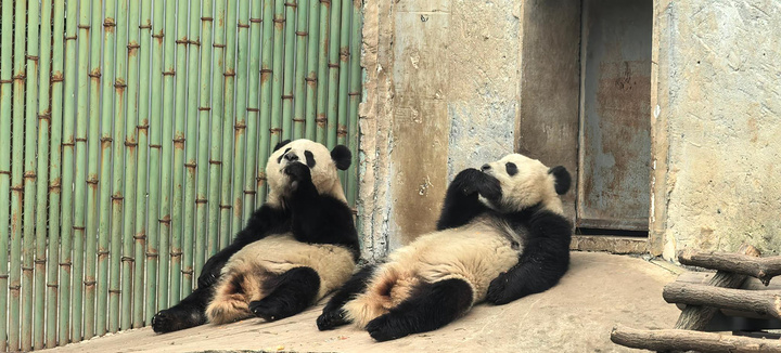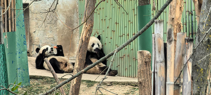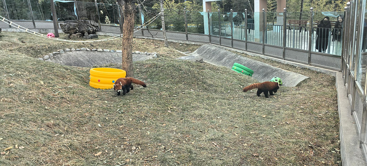 最上面是羚牛的场子,下面三个圆房子都是熊猫的住所,基本都是独栋,很是舒服,有太阳晒,有玩具耍,还可以不停地吃播。
