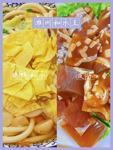 ·鸡鸭和乐:有特色的潍坊小吃,和乐条里的配菜丰富,鸡鸭肉鸡蛋皮还有糖蒜在里面,面汤特别好喝可以续,面量惊人,好大一碗,筒子们,桌上的香椿和韭菜加点在面里,惊喜!