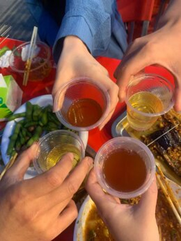 出门觅食,让司机开到黄河边上的小吃一条街,路上司机有提到小西湖那边吃比较便宜量大,但我们还是没有改变路程,还是去了黄河边上,下车后,从木塔巷一路走进去,看了下,最好决定还是去吃烤肉,小赵找了一家据说好评的【烤肉店】:金郡大自然烤肉,一路上很多烤肉店,到了店门口基本上都满桌了,看了应该不错吃,点了羊肉串、牛肉串、烤豆皮、茄子、土豆、腰子、鸡翅等等,还点了杏皮水、男生还是继续喝点啤酒,【杏皮水】有点点酸,味道还行,烤串刷的酱料味道很棒,是以前从没吃过的,基本光盘了,后面还给送了盘瓜子,吃晚聊天嗑瓜子,差不多天黑了黄河周边的灯也亮了,于是我们走路逛去黄河边上,路上看到有这边特色饮品的奶茶店,我去点了杯【三炮台】,味道还行吧,主要也是晚上有点冷,拿在手里能取暖,小赵去跟网友汇合了,我们三去逛【中山铁桥】,拍下夜景,然后走到对面的【白塔山】溜达了下,路上我还被其他小姐姐帮忙拍照,这几天练的拍照技术还行啊,她们都觉得拍的很赞,哈哈哈,可能也是审美疲劳吧,没啥看头,就往回走,才注意到路边有一个读者的宣传牌,原来我经常看的读者是兰州的特产啊!后面布瑞建议去【正宁小吃一条街】逛逛,也不是很远,就走路过去,路上还遇到很多买小猫小狗的摊子,每只都好可爱。走了有点久,才走到,到了现场,看到卖醪糟的又继续买,他们两个先点了,我往前面走发现有上过舌尖上的中国的醪糟店,好多人排队,于是我也加入了排队的队伍里,老长了,还开始下起小雨了,排后面的小孩子偷偷摸我的手,开始跟我搭讪聊起来,社牛,布瑞他们继续往前逛没有啥好吃的了,他们就去附近的桌球馆打球去,我等拿到醪糟也过去跟他们汇合,看他们打球。