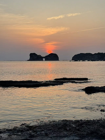 由于气象云层的变化,我没有看到落日正好落入缺口,即便如此, 落日霞光晕染岛礁的剪影和海面恬静的波浪起伏也十分地治愈。