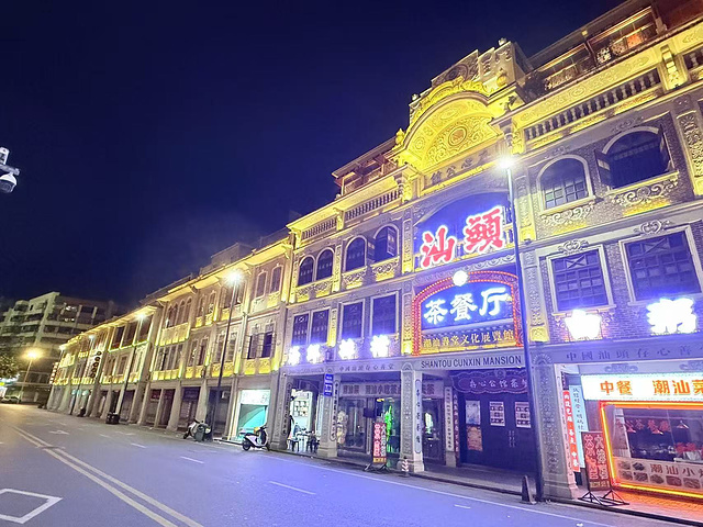 感受过潮汕地区的夜宵氛围,开始驶向小公园附近入住,刚好感受了夜晚的骑楼风景。
