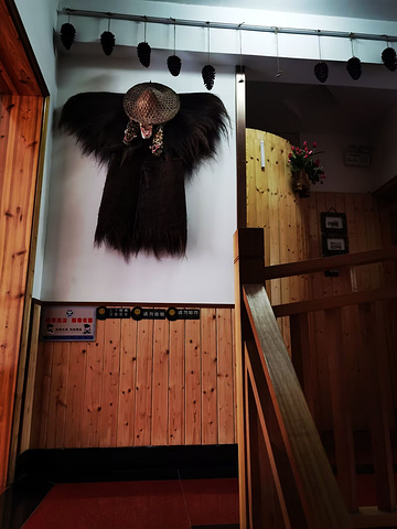 亮点二:设施布局。民宿定位经济型,房型有大床房、双人房和家庭房,客房面积约16~20㎡,室内不很大却很整洁,装饰不奢华但很亲切;一楼为中式元素的设计风格,有一种古典气质,尤其是陈列的一些古董,会让人很好奇,像竹子躺椅、蓑衣斗笠、木桶托盘,像蓝花布、收录机、缝纫机,还有一些不知为何用的东东,带着岁月的痕迹,满满的过去式的回忆,不禁会让人感叹不已。这些设施布局是一个亮点,赞赏之余,给个意见,是针对客房的房门:开门太费劲,开个房门要折腾一番,感觉这房门专门欺负我们一样。哈哈~老板!换个智能锁呗,这屋子等级就上去了哈。下次来,咱就熟门熟路、直冲房间了。
