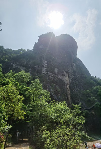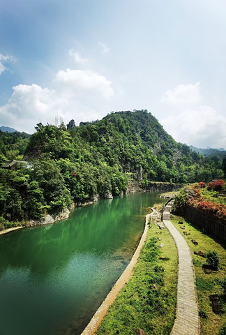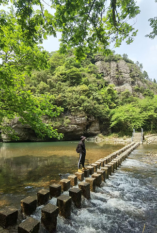 3、对岸渡船码头→东门(进口)。这段区域的景致呈两头精致、中间pingping的态势!一头是渡船码头附近,过了这个点位,沿着栈道一路前行,景致就有点不起眼了,水仙洞、鱼骨岩、石门、红军哨卡、仙人梯田等景观,也就走过带过看一眼而已,这里的水位很浅,很多地方有断流,没有了水的灵气,总觉得缺少了一种韵味,不由得瞎想起来:昨天下的一场大雨去哪儿了?不会是被上游卡脖子了吧?还有一头是东门附近,一直到了石桅岩正面亮相,标准照的打卡机位,好像掀起了高潮,把唱主角的留到最后欣赏,不免有种先抑后扬的味道。我们反走是不是有道理呀。