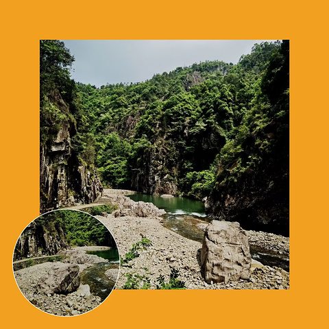 1、西门(出口)→渡船码头。这段区域叫做“小山峡”,沿途有多处“V”字型河谷,还有岩槛、跌水、壶穴、侧蚀槽等丰富多样的河流地貌景观,全程约3km,有点像进入深山老林的感觉,很幽深、很静谧。由于河谷里的水位很低,没有激流永进、也没有惊涛拍岸,所以想象中的“小山峡”该有的景致没有呈现出来。像“百褶瀑”,崖壁上的百褶看出来了,但一泻千里的瀑布没看着,而且一滴水都没有!像“中流砥柱”,由于水浅不到位,这块水中的巨石也就没有了那种壮观的气势;像“海贝听涛”,这些被溪流冲刷得“磨圆”了棱角的“小海贝”,已经裸露在河床上,饥渴地盼望着涛声依旧,水不丰导致“小山峡”逊色不少。