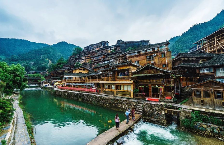 寨子苏醒前的时刻最是动人。青石台阶浸着夜露的微光,吊脚楼的雕花窗棂似沉睡的眼睫,晾晒的苗绣在风中舒展斑斓的羽翼。偶遇门前编竹的阿婆,她鬓角银丝与竹篾共舞,递来的米酒酸涩中藏着甜,像抿了一口山野的往事。她说:“寨子里的光阴是慢的,要等三年,米酿才酿出回甘。”晨雾里的脚步声、竹篾的窸窣声、屋檐滴落的晨露,皆成了时光褶皱里细密的针脚。