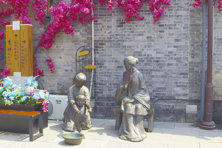 进入古镇,已经是上午十点多了,阳光炽烈。街道两旁的青砖灰瓦建筑错落有致,磨砖对缝,古韵十足,街道上摆满了售卖杨柳青特色民俗产品的摊位,琳琅满目,让人目不暇接。