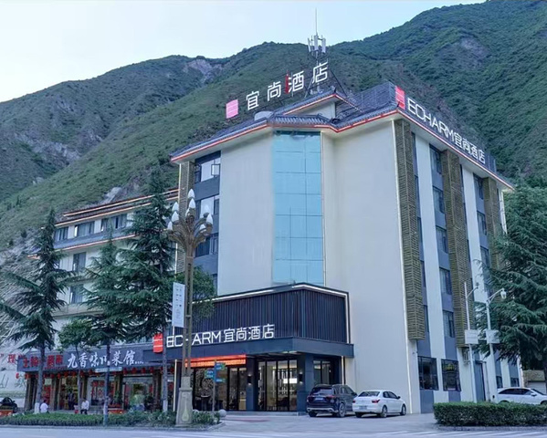 我们从西安到这就下午了,加油260,高速253,住的是县城的宜尚酒店(九寨沟店),它在县城的大路口,停车方便,环境舒适,服务亲切!综合评分4.9,非常推荐给大家,各方面都不错,在旺季两百多的价格含早,简直良心极了。豪华双床2天516含早,步行去吃饭,吃完饭凉风习习,从河边遛弯到酒店,巴适极了!